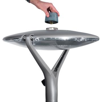 Montaż OYO bezpośrednio na słupie o średnicy Ø60mm z końcówką montażową o długości 80mm. Może również (jako opcja) zostać zintegrowana z czujnikiem ruchu PIR, zapewniającym „światło na żądanie”.