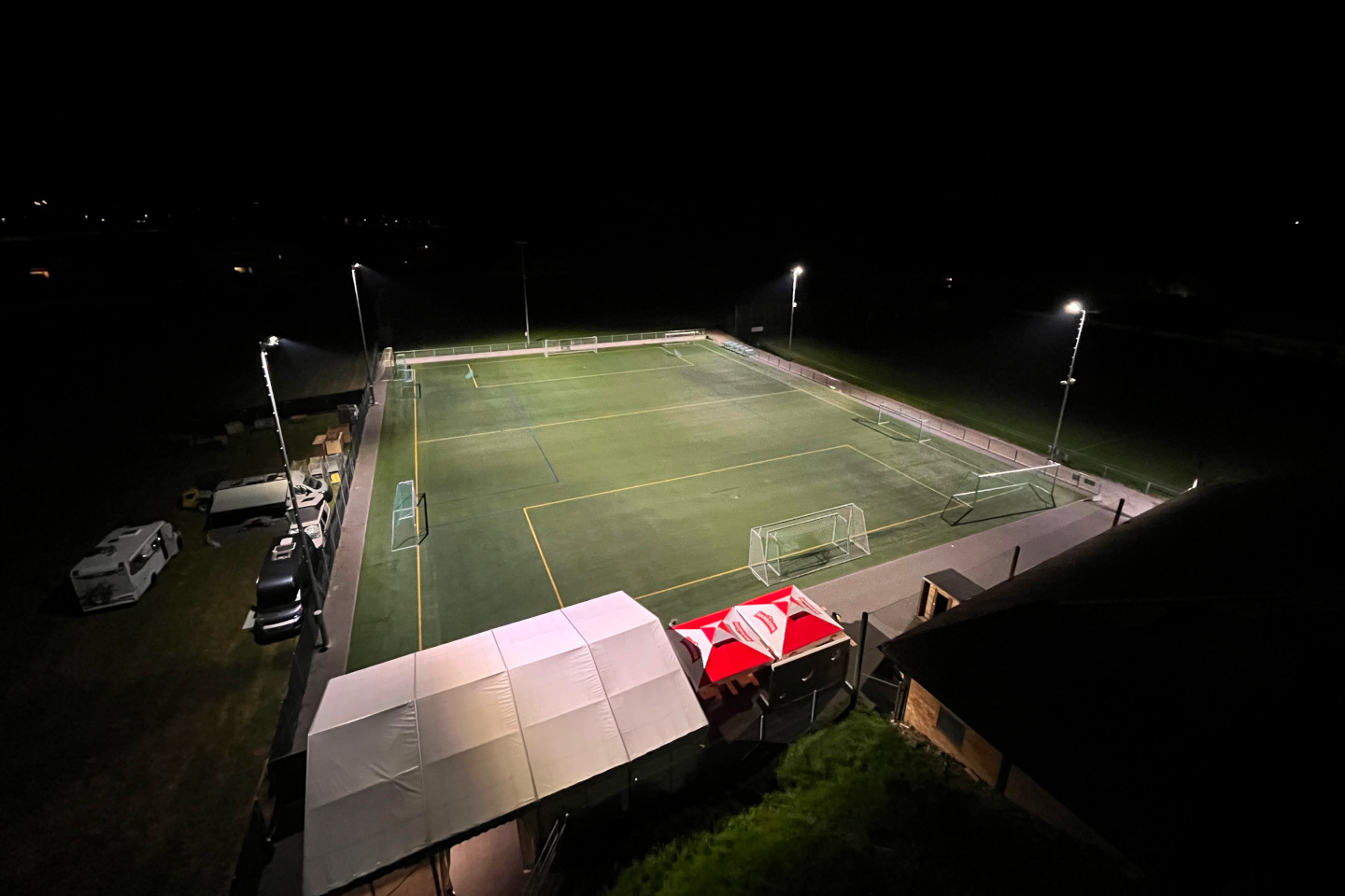 Boisko A zostało dodatkowo wyposażone w tryb eventowy, który oświetla jedynie naświetlacze w pobliżu strefy festiwalowej – idealne rozwiązanie podczas wydarzeń społecznych i imprez okolicznościowych.